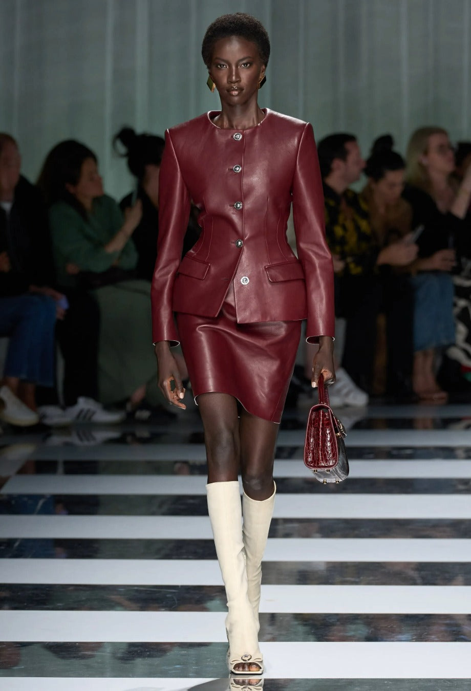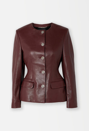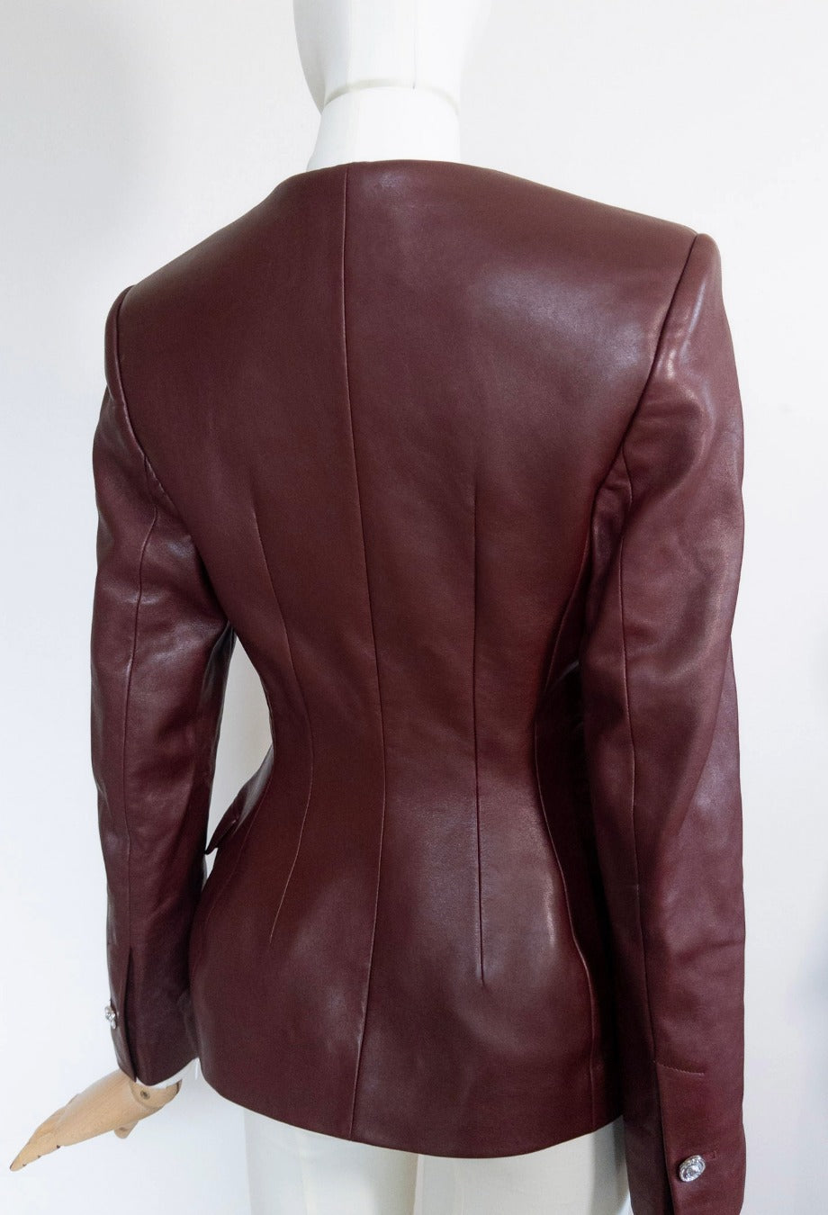 Versace S/S 2024 Runway Hourglass Leather Jacket in Burgundy