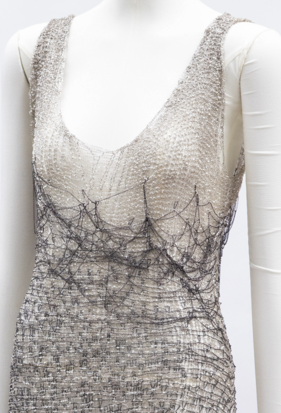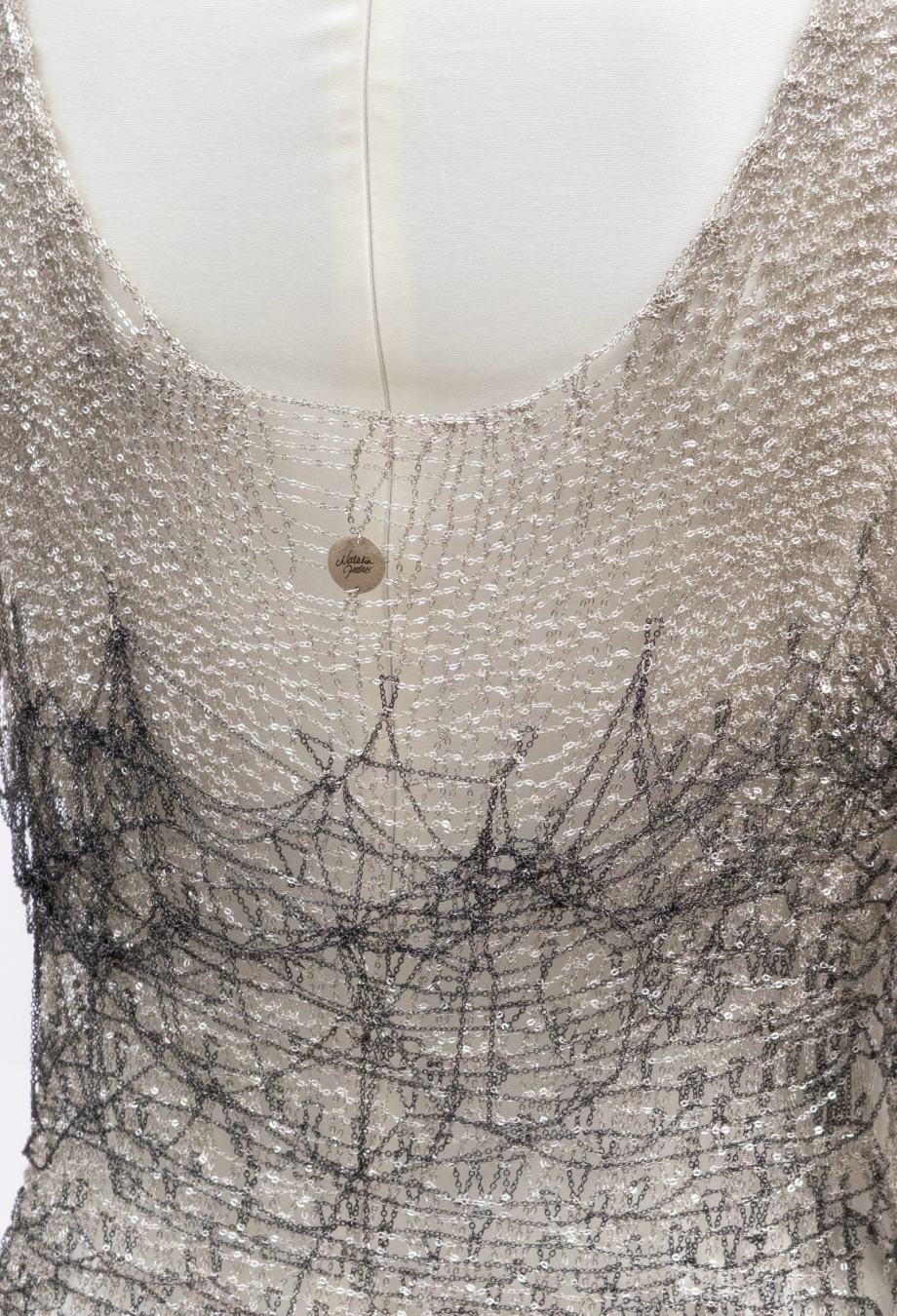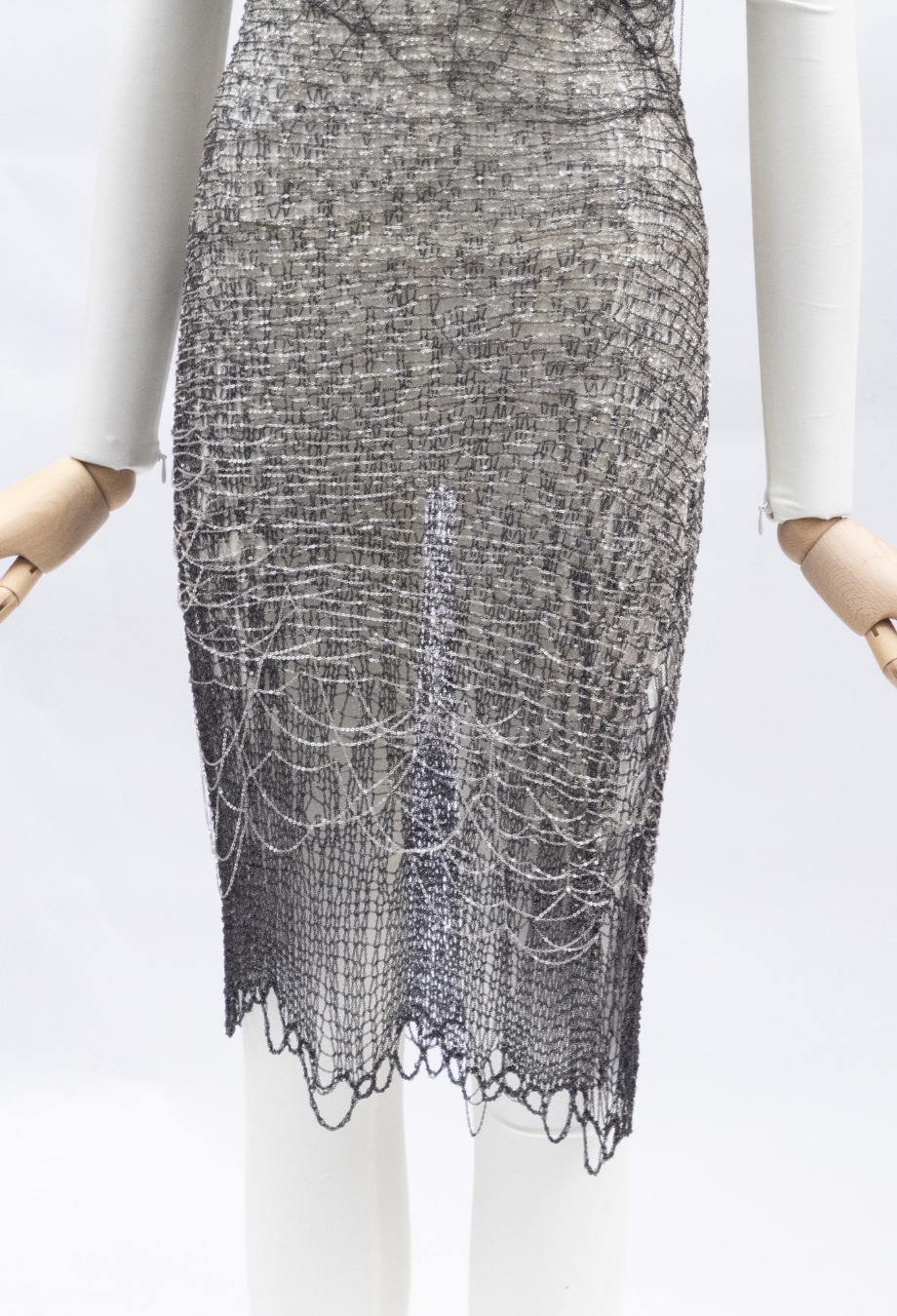 This striking Natalia Fedner metal mesh dress is truly one of a kind. Handwoven from delicate metal chain links, the fluid mesh construction drapes over the body like liquid silver — catching the light with every movement for an ethereal, almost otherworldly effect. Made in Los Angeles, this piece speaks to modern craftsmanship and boundary-pushing design — a true statement for after-dark dressing. Layer it over tonal lingerie or a sleek slip for an elevated approach to eveningwear — or style it solo for a daring, runway-inspired look. A rare and collectible piece from one of fashion’s most innovative artisans.